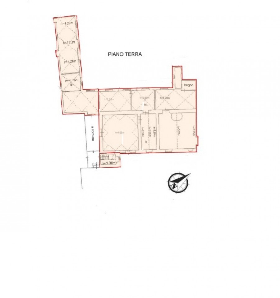 L´unità immobiliare si sviluppa su una superficie complessiva di 260 mq, di cui 80 mq già parzialmente ristrutturati e 180 mq da completare secondo le proprie esigenze. Gli spazi ampi, con soffitti alti tra i 3.70 e i 4.20 metri, conferiscono una sensazione di grande respiro, arricchiti da alcuni affreschi originali che ne raccontano la storia e l´eleganza. Gli interni, pur conservando le caratteristiche architettoniche d´epoca, offrono un grande potenziale per una ristrutturazione che possa fondere il fascino del passato con il comfort e le necessità moderne.
