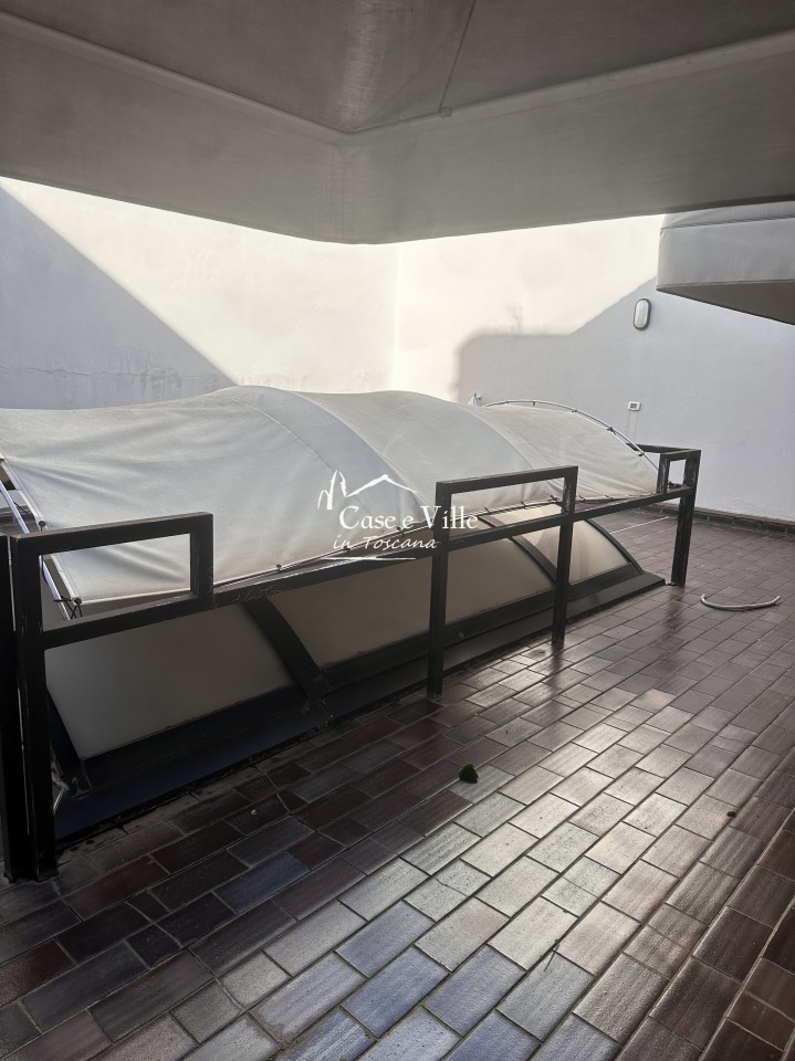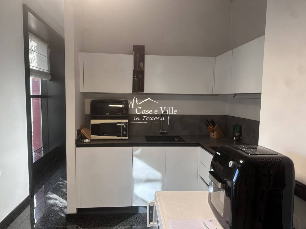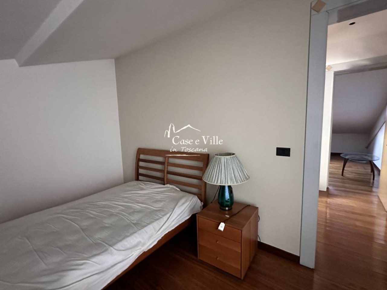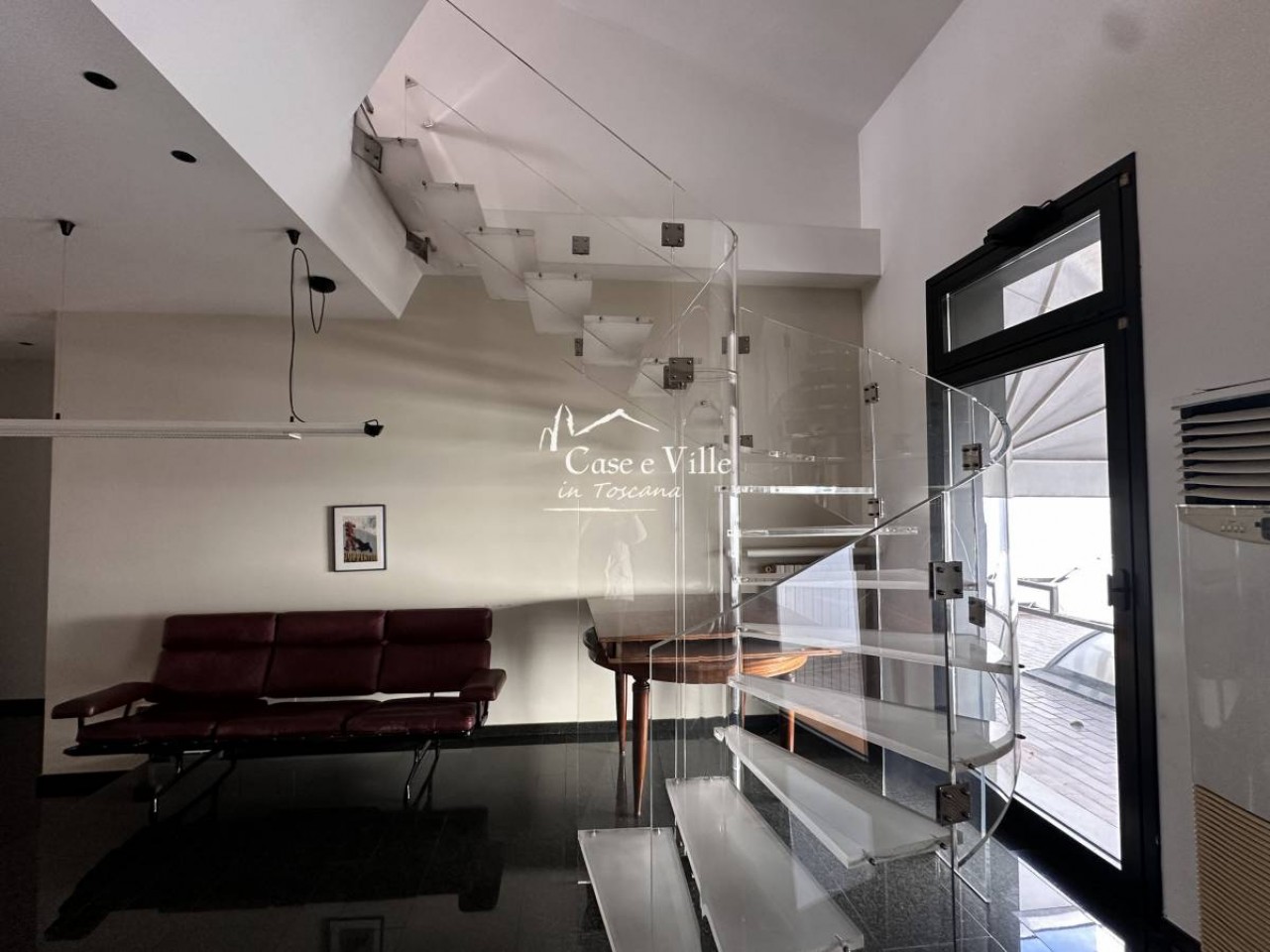 Immobile unico con entrata indipendente posto al primo piano di un immobile industriale con architettura moderna contemporanea, rifinito con materiali eleganti. L´appartamento si compone di uno spazioso soggiorno doppio, che si apre su un grande terrazzo abitabile, la cucina arredata, sala pranzo, una camera doppia con bagno. Attraverso una bella scala in plexiglass si accede alla mansarda che propone uno spazioso living con accesso al terrazzo a tasca , una camera, un bagno, altra stanza studio/cameretta in mansarda. Stanza di servizio che si può utilizzare come lavanderia e stanza tecnica. Le foto lo presentano arredato tipo ufficio, finora usato come tale, verranno tolti i mobili e rimarrà la cucina il tavolo pranzo con sedie e un un letto, se interessa. Il pavimento della parte giorno è in Marmo nero. Le camere sono in parquet. No condominio