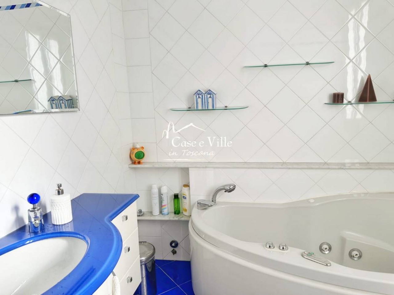 Da uno spazioso ingresso si accede a sinistra e a destra a due salotti adibiti a linving e sala pranzo. La cucina si affaccia sul giardinetto interno, dispone di una stanza di servizio e annesso un bagno ospiti. Al primo piano si trovano le tre camere con tre bagni e un ripostiglio. La mansarda ha un living che affaccia su un piacevole terrazzo, altre due stanze illuminate da velux, un bagno e la lavanderia. La casa è ben tenuta e necessita solo di essere rinfrescata.