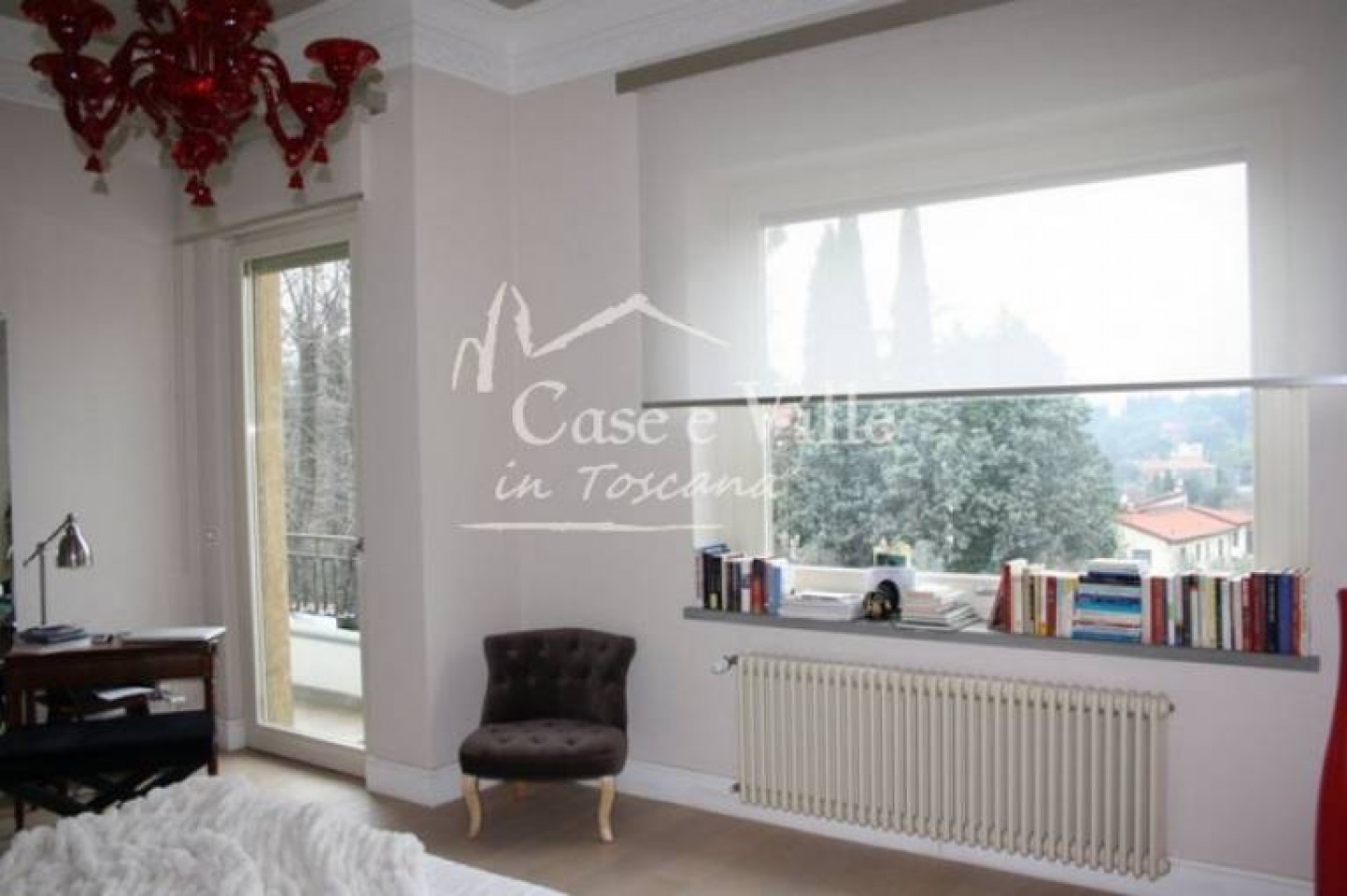 Bellissima porzione di villa libera su tre lati in zona prestigiosa e panoramica, con grande giardino romantico. Completamente ristrutturata, rispettando lo stile di un famoso architetto degli anni ´40 che l´ha progettata, rifinita con materiali di altissimo pregio, si sviluppa su 4 livelli. Al piano terra troviamo un elegante entrata con grande scala scenografica a spirale, tipica delle ville di quegli anni, un grande soggiorno doppio luminosissimo, con grandi vetrate che affacciano sul giardino, zona pranzo e cucina, bagno ospiti e ripostiglio. Dalla cucina si accede ad uno spazio esterno piacevolmente vivibile nelle serate estive. Al piano superiore troviamo tre camere doppie e tre bagni, una cabina armadio. Le finestre di tutte le stanze sono come quadri di panorami nel verde!! Al piano mansarda, un grande living con bagno e camera per ospiti, lavanderia e guardaroba. I servizi e gli impianti si trovano al piano seminterrato. Entrata indipendente, impianti autonomi, allarme aria condizionata. La villa č pronta per essere abitata e non richiede restauri. Nel giardino una deliziosa dependance completamente decorata da Bartel con camino e barbeque.