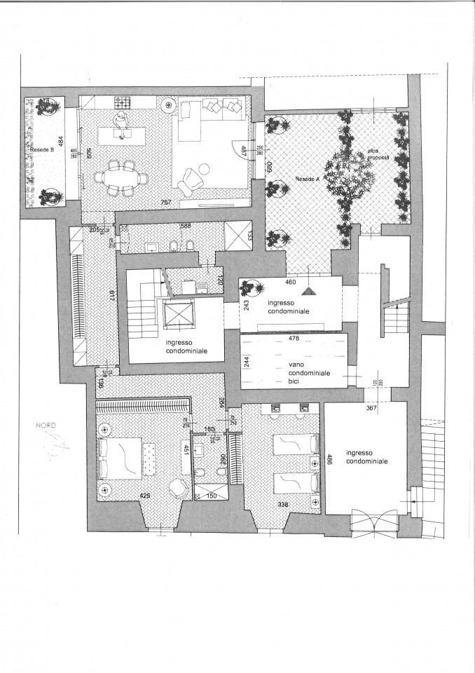 Appartamento al piano terra con grazioso resede interno su cui si affaccia tutta la zona giorno. Ottima suddivisione interna con ampia zona giorno, due grandi camere doppie, due bagni e una lavanderaia. Disponibili posti auto e garage nelle immediate vicinanze.
