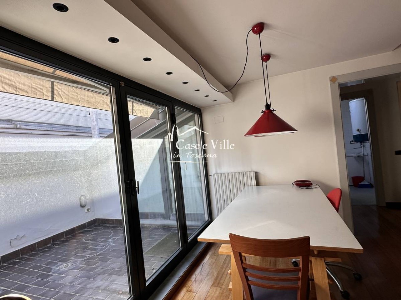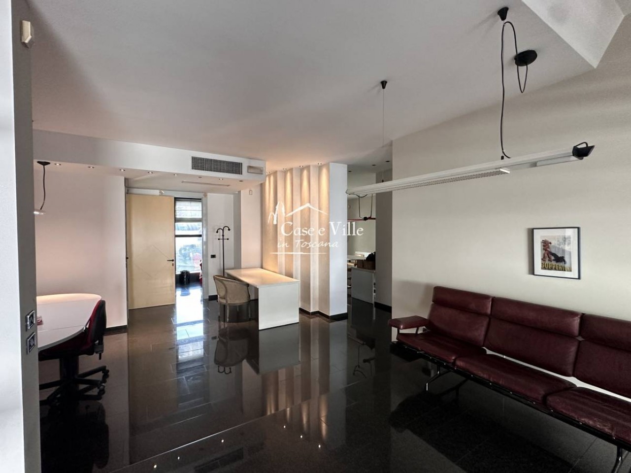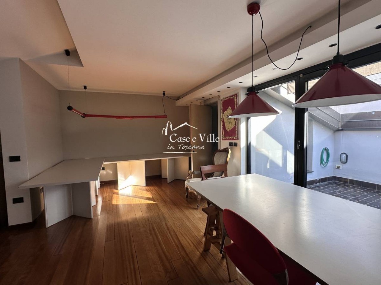 Immobile unico con entrata indipendente posto al primo piano di un immobile industriale con architettura moderna contemporanea, rifinito con materiali eleganti. L´appartamento si compone di uno spazioso soggiorno doppio, che si apre su un grande terrazzo abitabile, la cucina arredata, sala pranzo, una camera doppia con bagno. Attraverso una bella scala in plexiglass si accede alla mansarda che propone uno spazioso living con accesso al terrazzo a tasca , una camera, un bagno, altra stanza studio/cameretta in mansarda. Stanza di servizio che si può utilizzare come lavanderia e stanza tecnica. Le foto lo presentano arredato tipo ufficio, finora usato come tale, verranno tolti i mobili e rimarrà la cucina il tavolo pranzo con sedie e un un letto, se interessa. Il pavimento della parte giorno è in Marmo nero. Le camere sono in parquet. No condominio