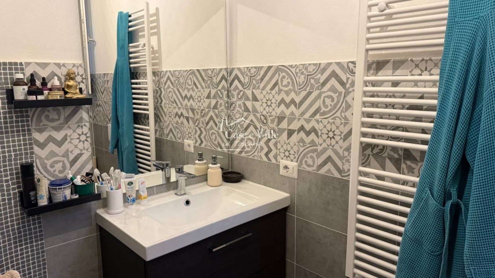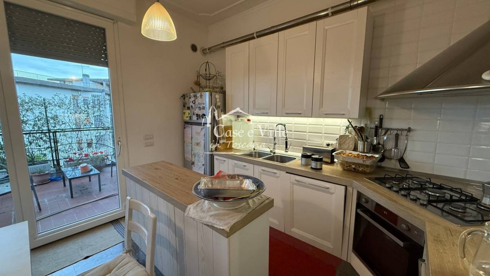 L´immobile, di circa 150 mq., si compone di un’ampia zona living doppia, con cucina a vista, che si apre direttamente sul grande terrazzo abitabile. La zona notte ospita tre camere matrimoniali, spaziose e ben distribuite, oltre a doppi servizi moderni e funzionali.