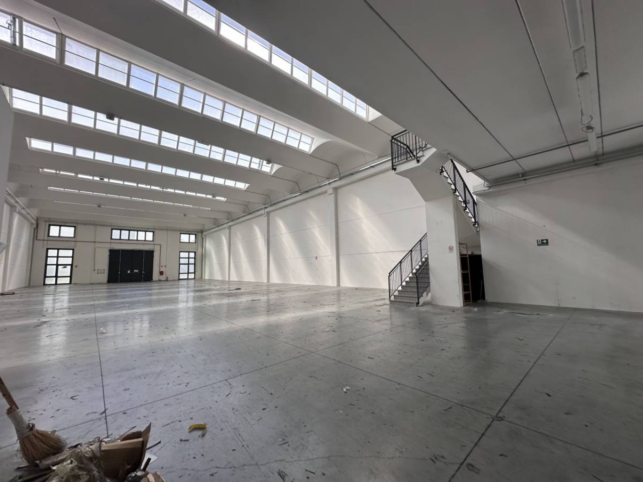 Capannone industriale di 1.000 mq., nuovo con altezza 9 mt. con doppie entrate, disponibile subito, luminosissimo, climatizzato, fornito di 2 bagni con antibagno e doccia. Al piano superiore troviamo gli uffici di 140 mq. con bagno, funzionali e luminosi. Pavimenti in cemento industriale e in gres porcellanato. Entrando da una porta indipendente adiacente, si accede all´appartamento di 150 mq. posto sopra al capannone ed č composto da soggiorno, cucina, bagno e tre camere, il tutto molto luminoso e ben rifinito, la comoditā di avere una casa accogliente sopra il luogo di lavoro. Sul fronte spazioso piazzale condominiale.