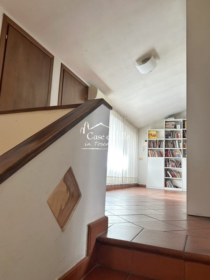 Da uno spazioso ingresso si accede a sinistra e a destra a due salotti adibiti a linving e sala pranzo. La cucina si affaccia sul giardinetto interno, dispone di una stanza di servizio e annesso un bagno ospiti. Al primo piano si trovano le tre camere con tre bagni e un ripostiglio. La mansarda ha un living che affaccia su un piacevole terrazzo, altre due stanze illuminate da velux, un bagno e la lavanderia. La casa è ben tenuta e necessita solo di essere rinfrescata.
