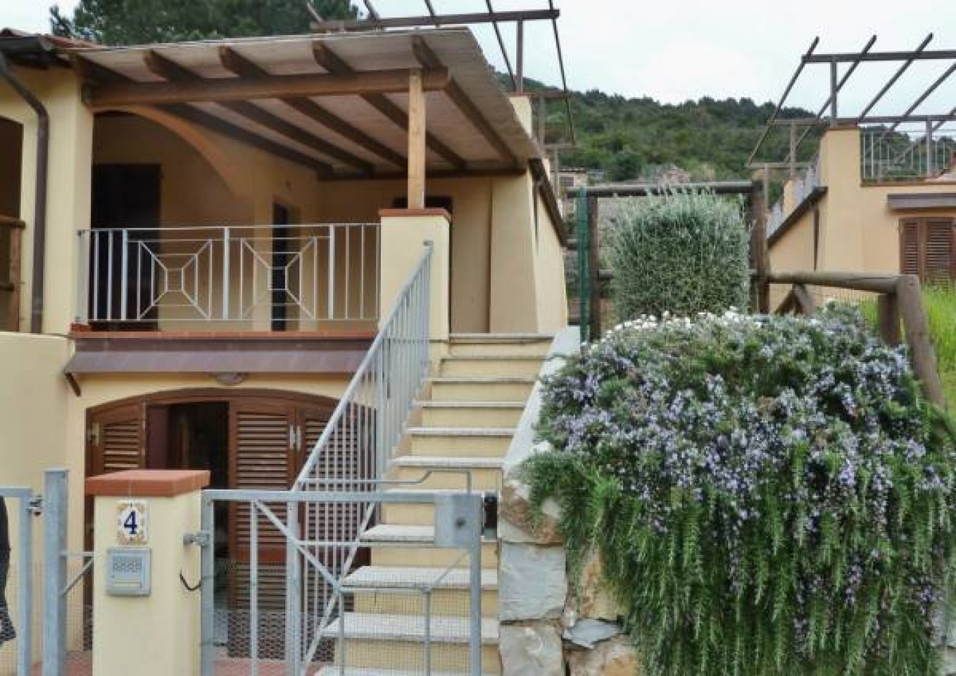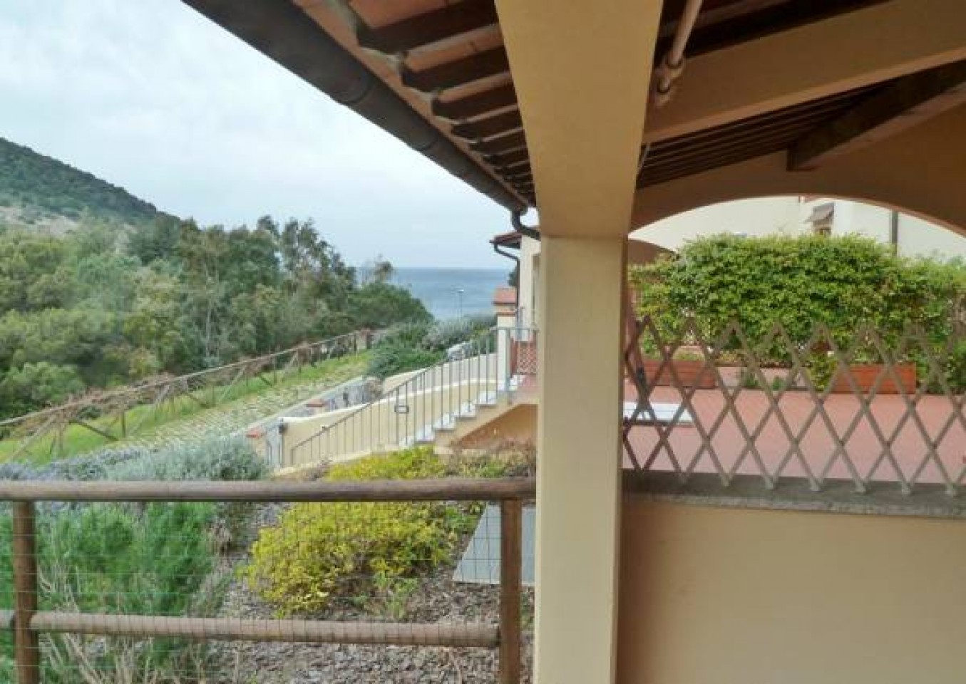 Villetta a schiera in posizione strepitosa con vista mare, grande terrazza vivibile con loggia. Su due livelli così composta: piano terra soggiorno con cucina, lavanderia, camera doppia, camera singola, bagno, primo piano soggiorno, cucinotto, camera doppia, camera singola, bagno e garage.